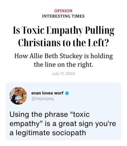 Why do people associate the two inherently. It’s like some sort of rationalization fallacy that insight leads to benevolence. There are people who use empathy with malice.