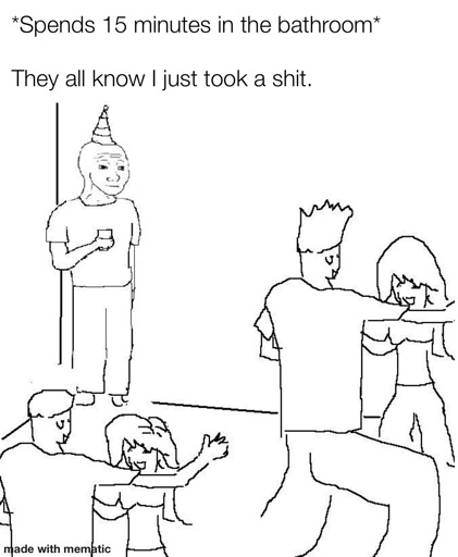 Oh, they were sneaking in to write on my birthday card. It’s even a tradition and it was my birthday party but no, my stupid fucking brain decided the logical explanation was that everyone had diarrhea.