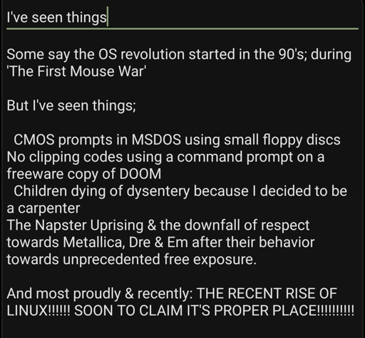 brem@sh.itjust.works to Linux@lemmy.mlEnglish · 3 months agoCongratulations to Linux on recent victories!lemmy.mlimagemessage-square25linkfedilinkarrow-up1145arrow-down118file-text