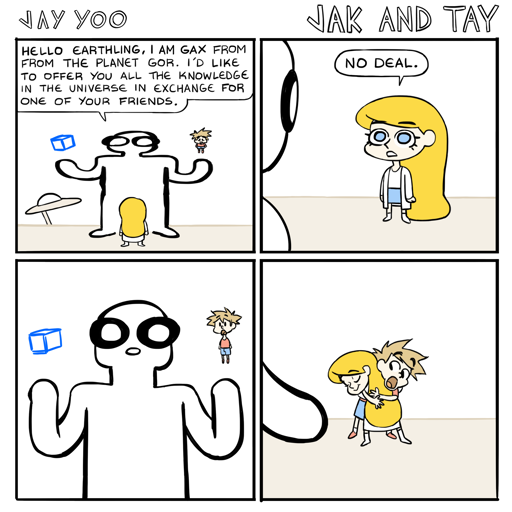 arrow-up1314arrow-down1imageChoosing Between All the Knowledge in the Universe and One of Your Friendslemmy.worldBlujayooo@lemmy.world to Comic Strips@lemmy.worldEnglish · 1 month agomessage-square70linkfedilink