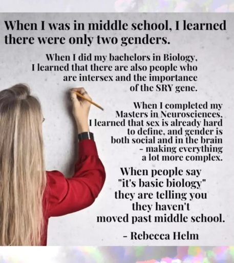 Scientifically it’s multiple continuums with trends across a broad population correlated with foetal and pubescent hormone exposure that is poorly applicable to individuals. But sure let’s reduce that complexity all down to „male/female“ scientifically.