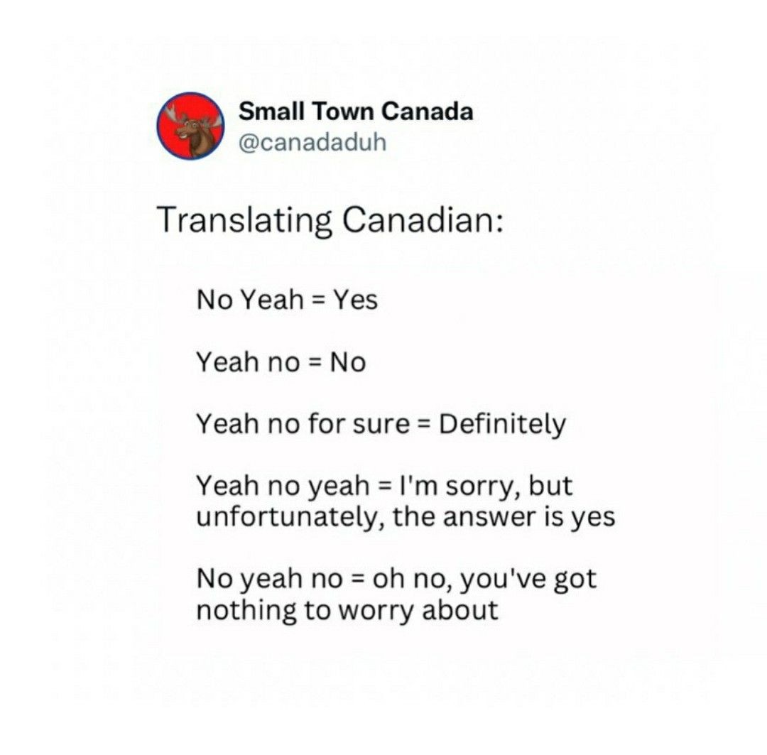 In Canada, its “oh yeah no for sure bud”