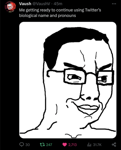 Lotus Eater@lemmy.blahaj.zone to okbuddyvowsh@lemmy.blahaj.zone · 2 years agoVaush deadnaming "X"lemmy.blahaj.zoneimagemessage-square0linkfedilinkarrow-up110arrow-down10